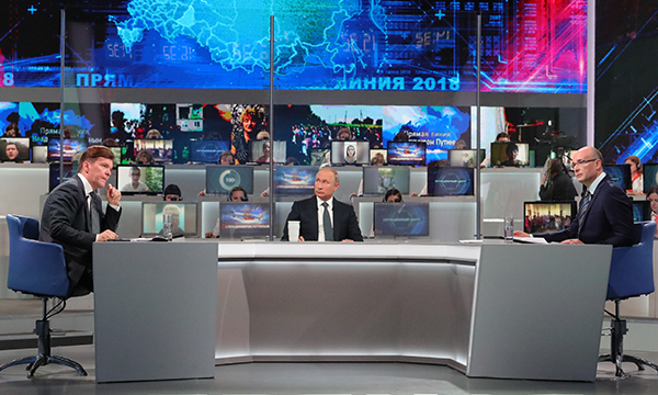 Президент РФ Владимир Путин сегодня в 16-й раз отвечает на вопросы граждан в рамках прямой линии. В этот раз мероприятие проходит с нововведениями - без гостей в студии, но с прямой связью с губернаторами и министрами.